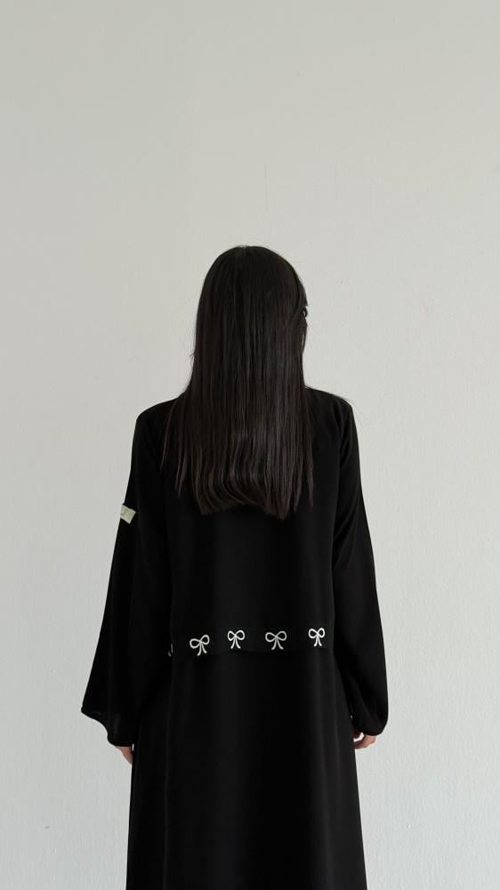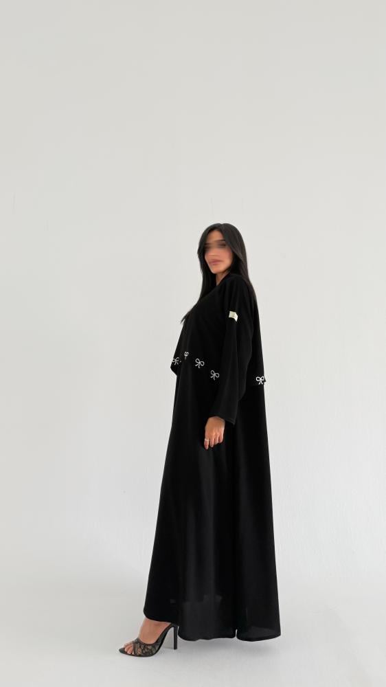 عباية سكره بتطريز فيونكا بالأمام وبالخلف بقماش كريب ملكي