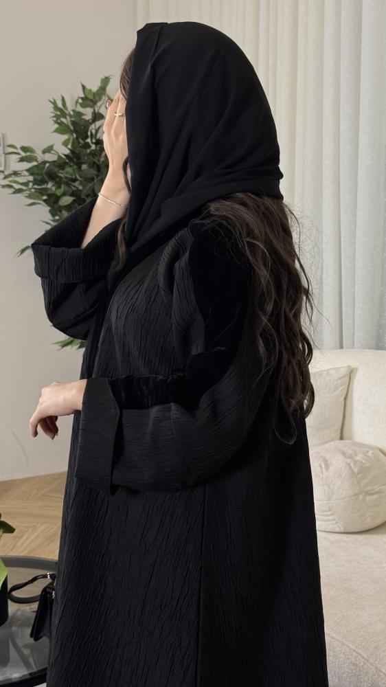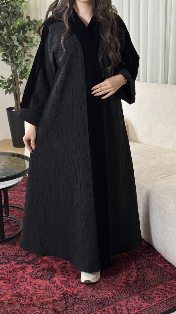 عباية هديل بقماش شتوي بقصة نص كلوش بقفلة طقطق