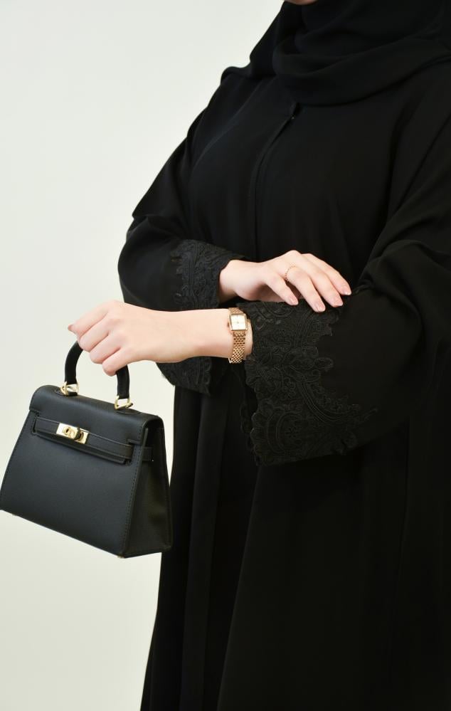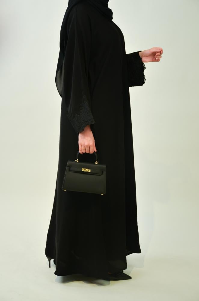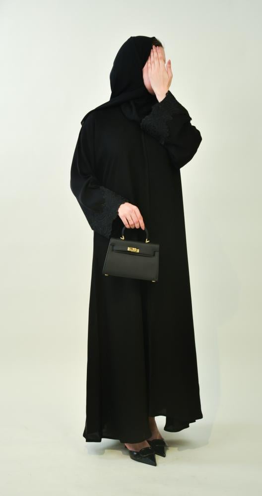 عباية وصايف بقماش انترنت ملكي طايح صيفي بقصة ربع كلوش بأكمام دانتيل🩶