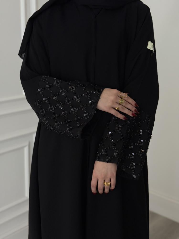 عباية غند 997 بقصة نص كلوش بأكمام ترتر بقماش انترنت ملكي طايح صيفي